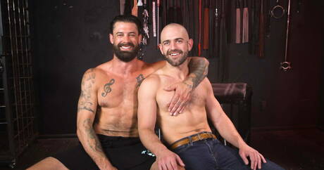 KinkyBitesMen: American gay bear Alpha Wolfe and husky guy Riley Landon sucking and fucking each other