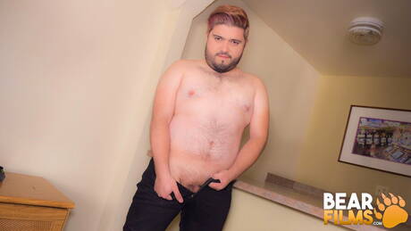 Bear Films: American hairy bear Alezgi Cage undressing and showing nice ass