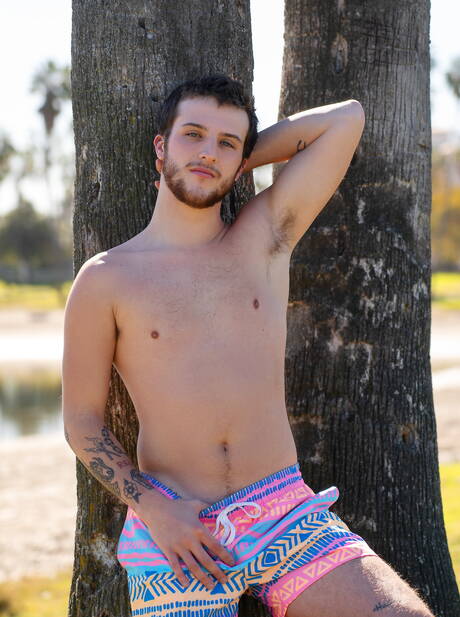 Sean Cody: American hairy stud Griffin Barrows jack off his cock outdoor