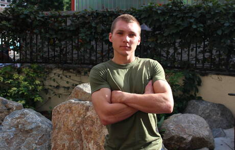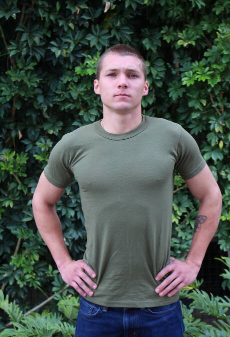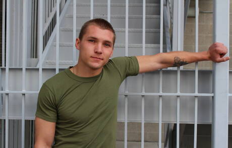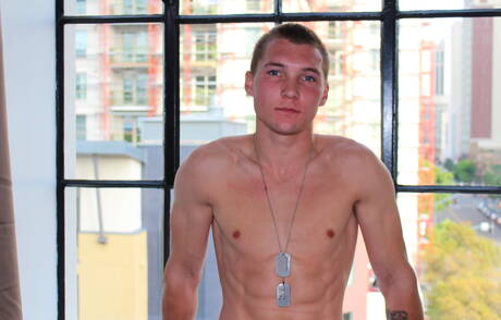 Active Duty: American hunk Elye Black undressing and showing hot butt outdoor