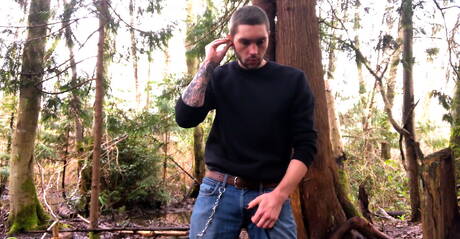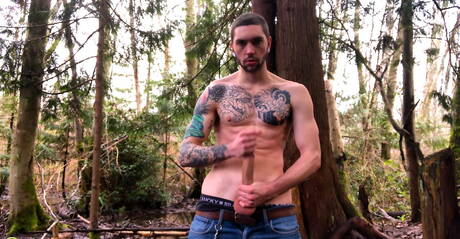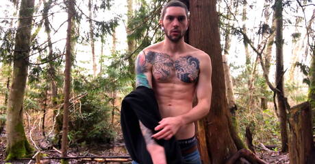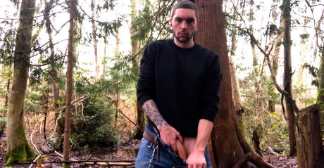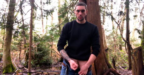 Chaosmen: American hunky guy Jake Hart playing with dick outside