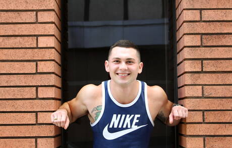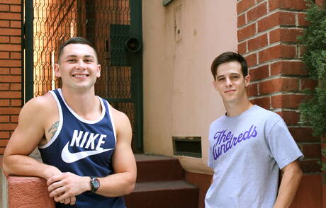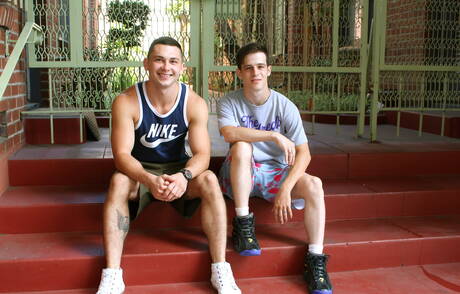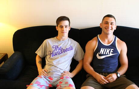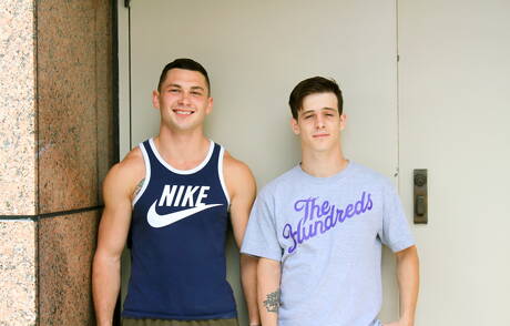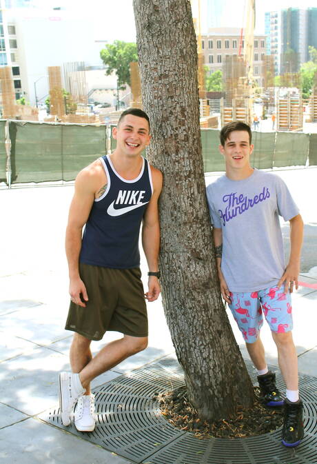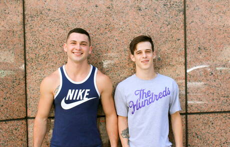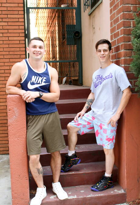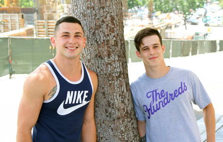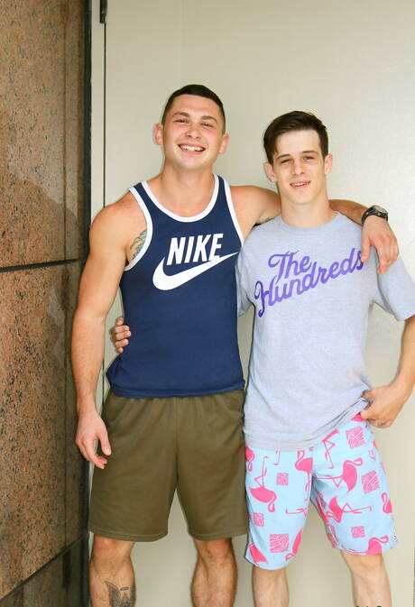 Active Duty: American husky guy Johnny Riley and hunk Brian teasing dick outdoor