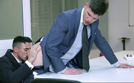 Men At Play: American husky guy Ken Rodeo and spanish strongman Klein Kerr fuck after dick sucking