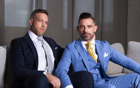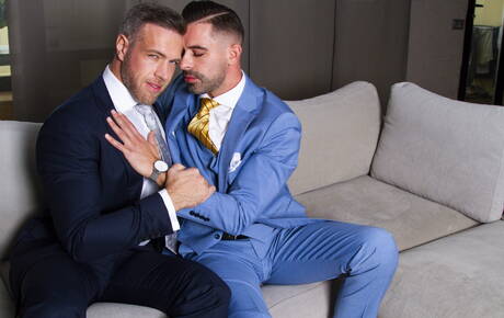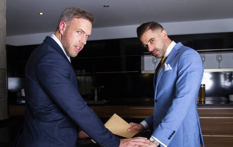 Men At Play: American muscular Alex Mecum and tough guy Andre Bugatti have a hot couple sex in the kitchen