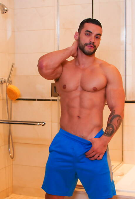 Shower Bait: American muscular Arad Winwin and beefy Luke C. Taylor love each other in bathroom