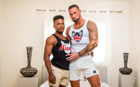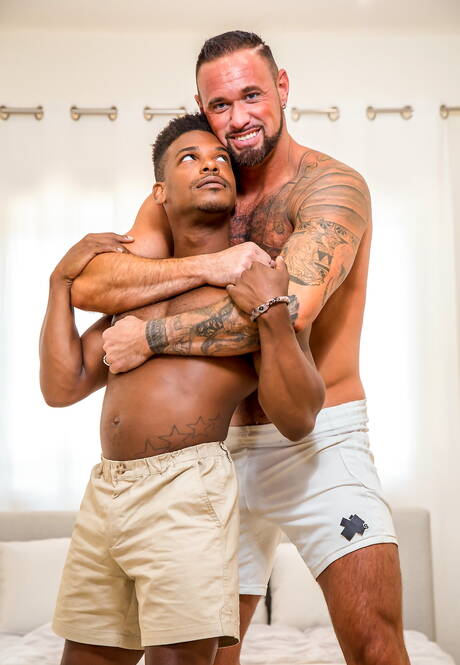 Noir Male: American pornstars tough guy Michael Roman and stud Adrian Hart in hot interracial ass fuck action