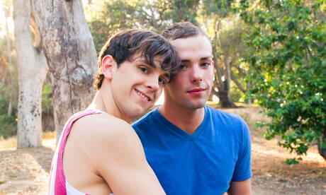 Helix Studios: American stars hot twink Zac Stevens and hot twink Oliver Hudson fuck ass after blowjob outdoor