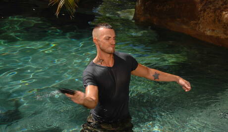 Men: American stars otter Jessie Colter and stud Andrew Stark love each other in the pool