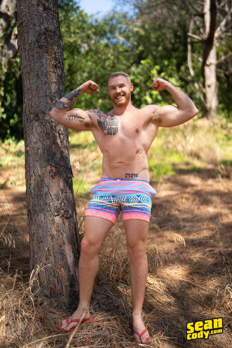 Sean Cody: American strong bull Eddie Burke and well-built David jack off dick outside