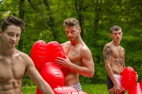 Cocky Boys: American strongman Calvin Banks and english beefy Josh Moore have a good anal sex at the pool