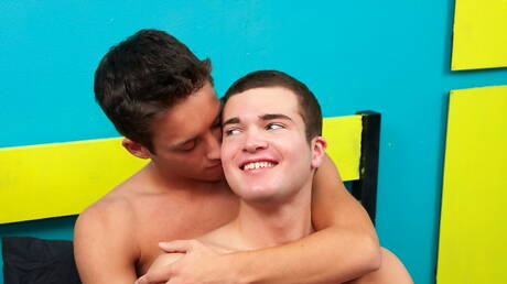 Helix Studios: American young dude Brody West and husky guy Jeremy Clark undressing and showing ass