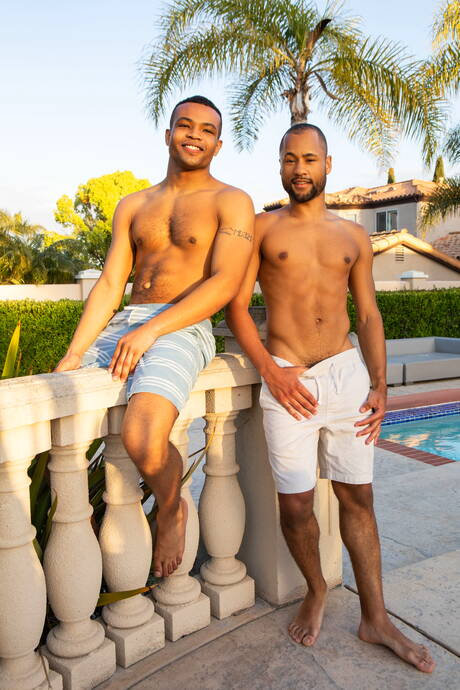 Sean Cody: Beefy Ace and ebony tough guy Xavier Zane in hard interracial anal sex in the pool