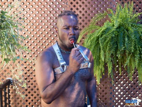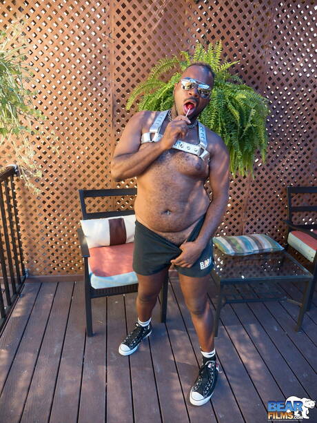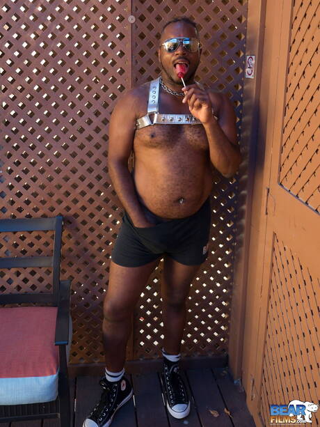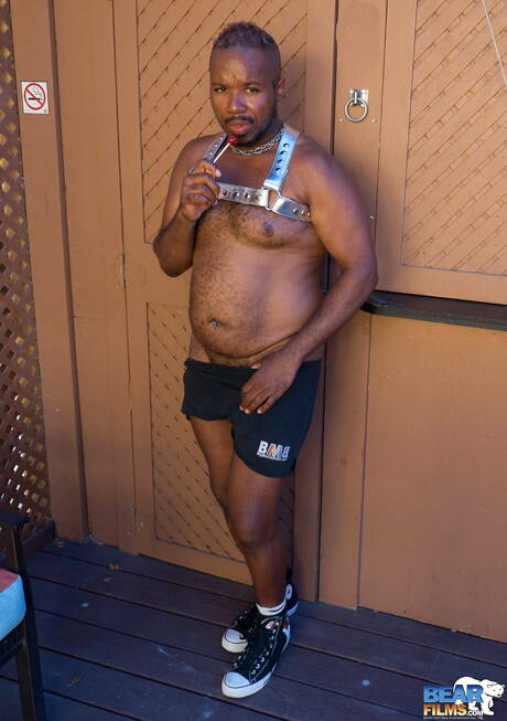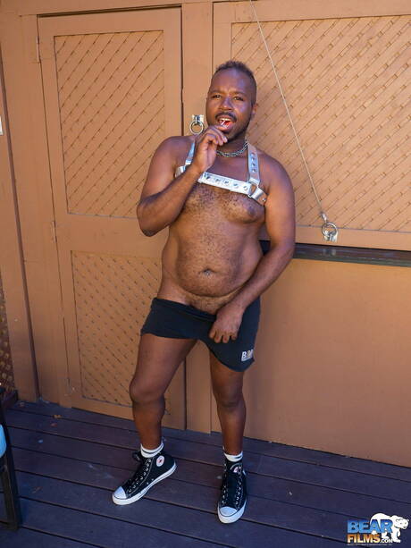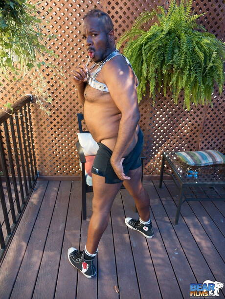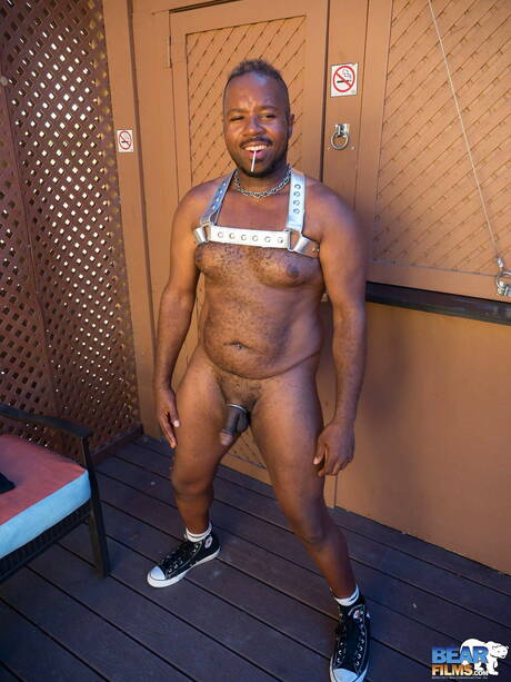 Bear Films: Black sexy Big Daddy Breeder posing naked outdoor