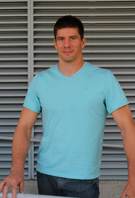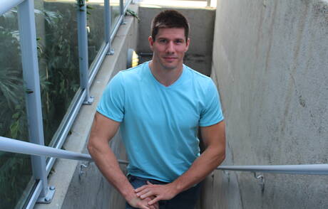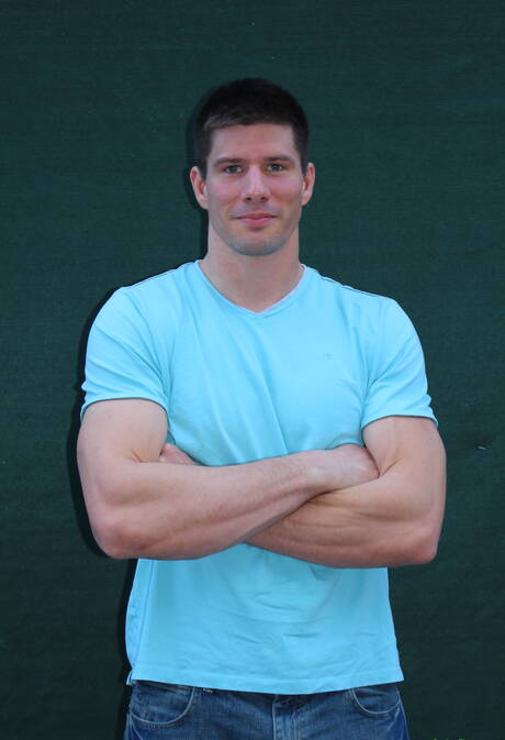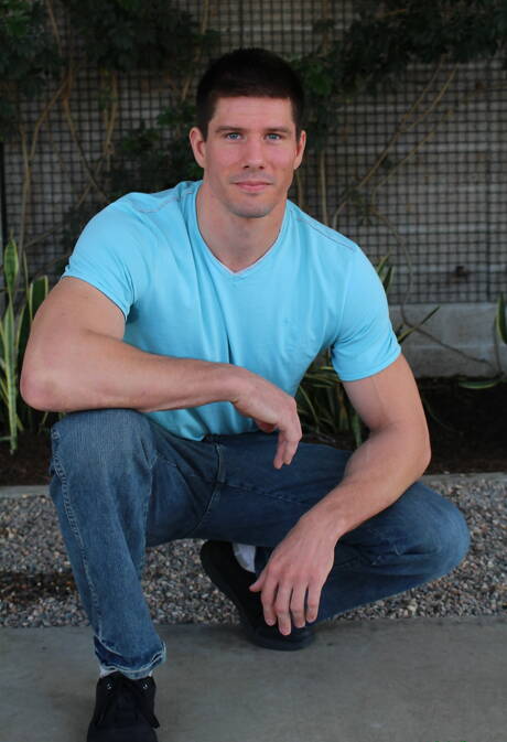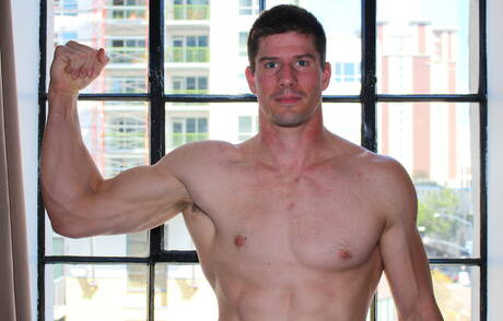 Active Duty: Bodybuilder Jake Bane shows a muscle body outdoor