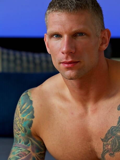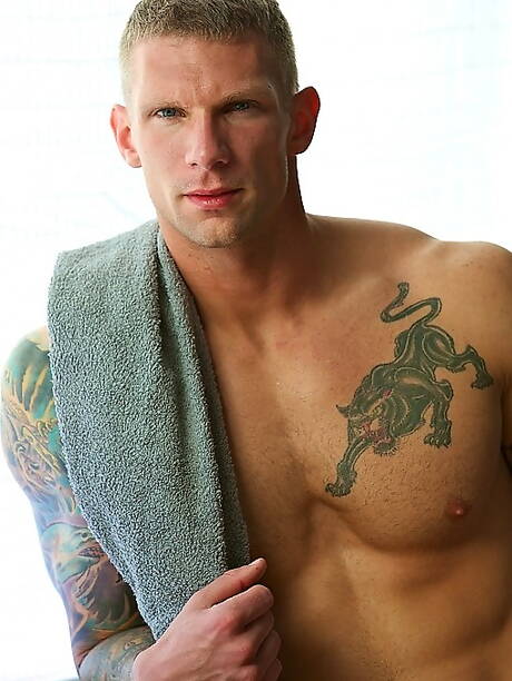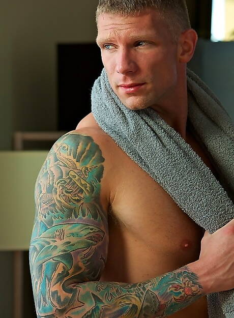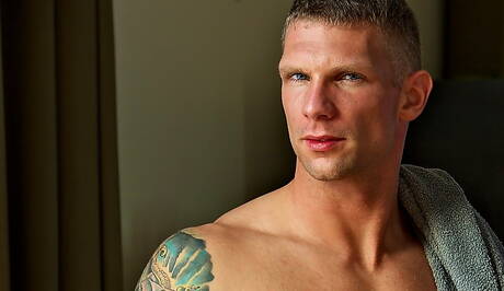 Active Duty: Bodybuilder Sebastian jack off his cock in hot shower
