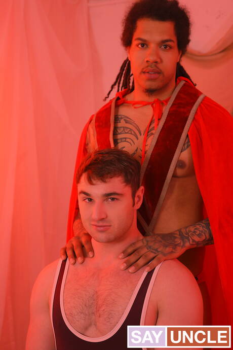 Black Godz: British hunky guy Michael Boston and black strongman Floyd Johnson fuck after interracial blowjob