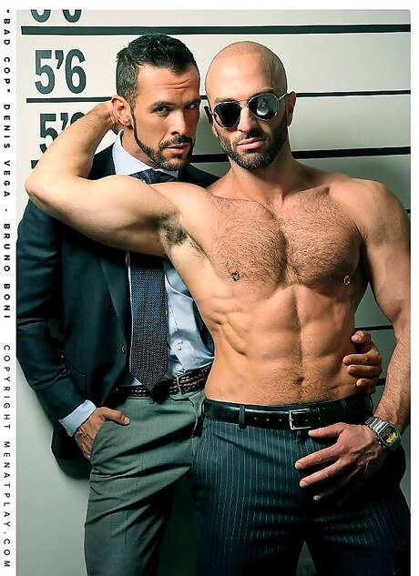 Men At Play: Bruno Boni and spanish hairy bear Denis Vega sucking and screwing each other