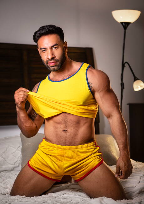 Men: Canadian bull Malik Delgaty and Mateo Zagal make a love in shower