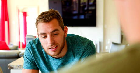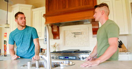 Next Door Studios: Famous americans, husky guy Carter Woods and well-built Jake Porter in hot ass fuck action in kitchen