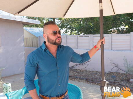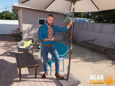 Bear Films: Hairy bear Damien Kilauea shows a husky body outside