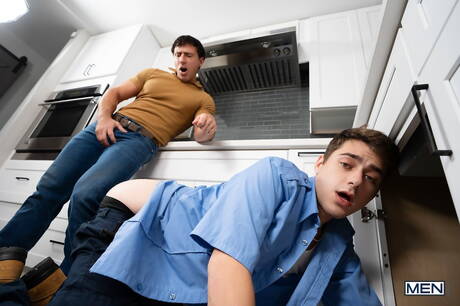 Men: Horny boys Joey Mills, Reese Rideout and Sage Roux sucking and fucking each other in kitchen