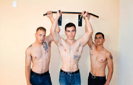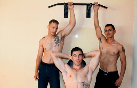 Active Duty: Horny buddies Chase, Johnny and Will banged each other outside