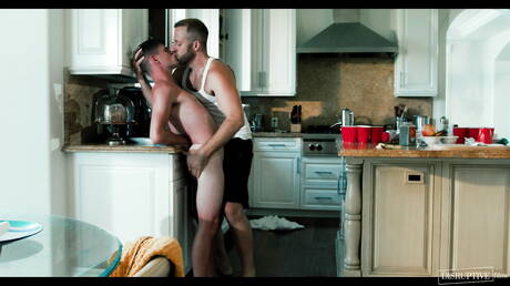 Disruptive Films: Hot american boys twink Dylan Hayes and gay bear Joel Someone in hot ass fuck action in kitchen
