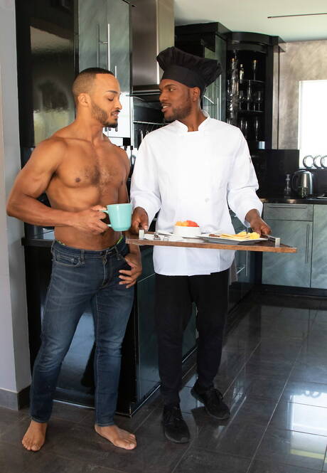 Noir Male: Hot american guys tough guy Aaron Reese and hunky guy Dillon Diaz in hot homosexual scene in the kitchen