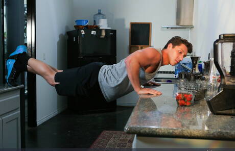 Pride Studios: Hot Jack Hunter, Michael Del Ray and Paul Canon have a hot threesome sex in the kitchen