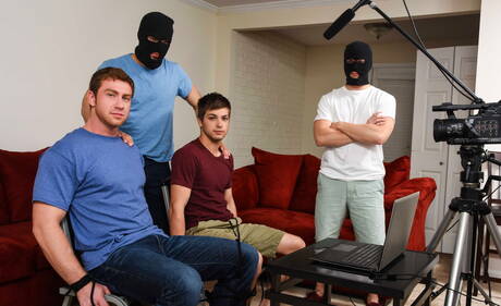Men: Hunk and Twink guys Brendan, Johnny, Tobias, Wesley, Will having clothed sex