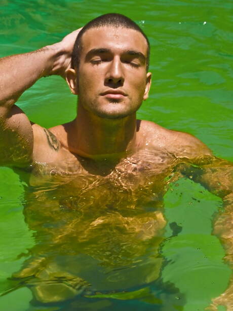Randy Blue: Hunky guy Luke Steel get naked and showing his butt at pool