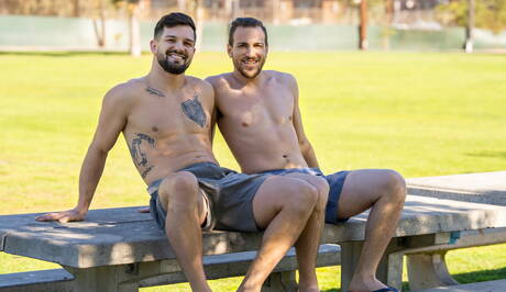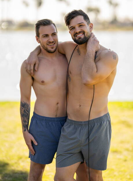 Sean Cody: Husky guy Rowan and american stud Brysen posing naked and showing butt on the beach