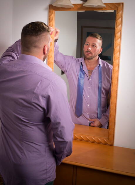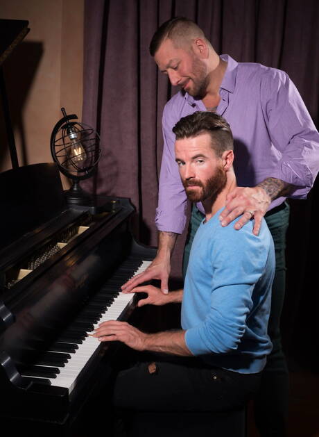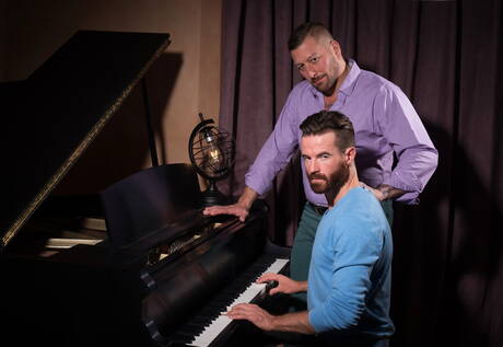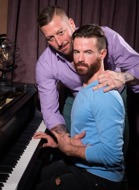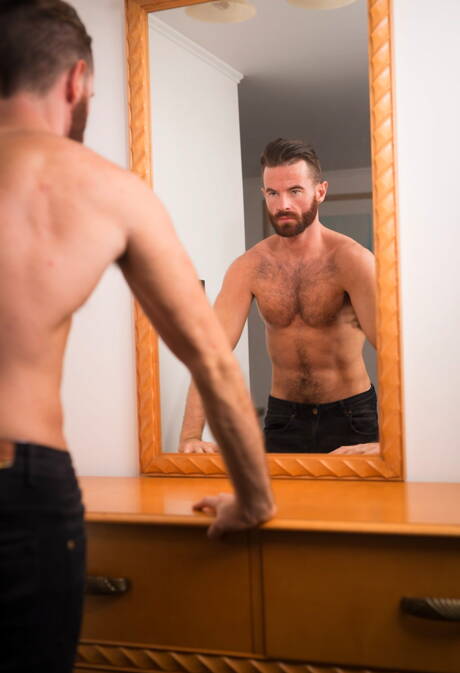 Icon Male: Irish gay bear Brendan Patrick and american hunky guy Hugh Hunter shows a strong body