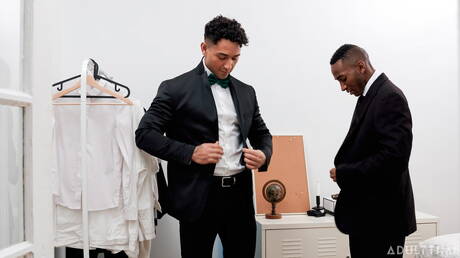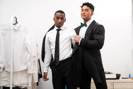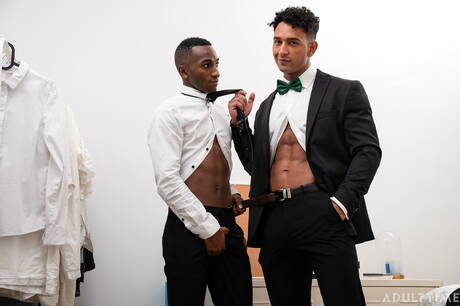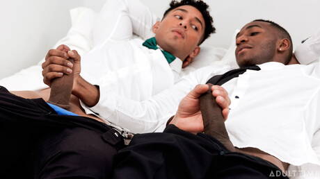 Jerk Buddies: Latin muscular Kenzo Alvarez and black young boy Kai Taylor fuck ass after blowjob