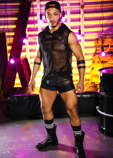 Men: Latino beefy Diego Sans and ebony well-built Dillon Diaz drilling an ass
