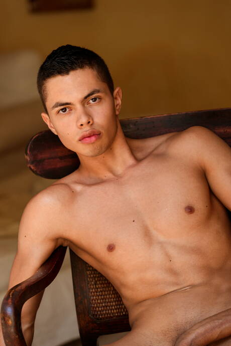 Freshmen: Latino muscular Mateo Diaz posing naked and showing nice ass in hot shower
