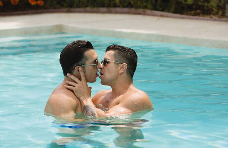 Falcon Studios: Latino superstud Jimmy Durano and american beefcake Trenton Ducati fuck after dick sucking at the pool