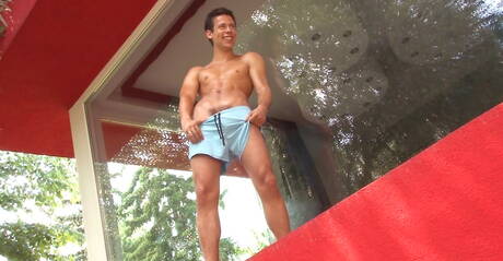 Belami Online: Muscular Jordan Farris teasing his cock outside