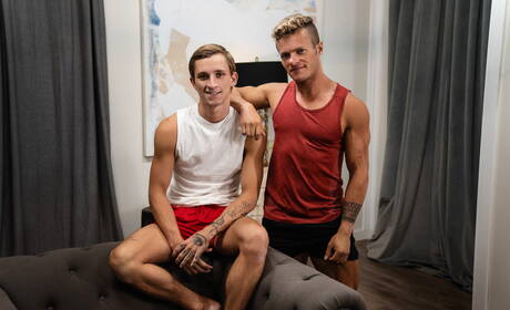 Men: Nice american boys young dude Theo Brady and strong bull Pax Perry jack off with dildo