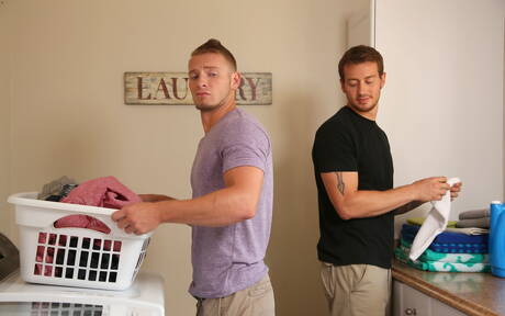 Next Door Studios: Nice american buddies hunk Mark Long and tough guy Jake Karhoff fuck ass after sucking dick in bath