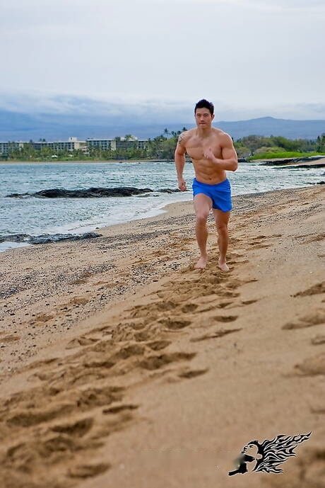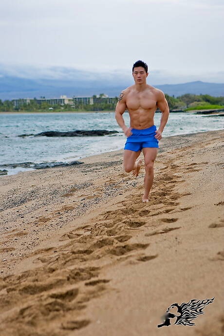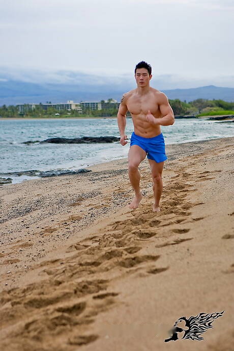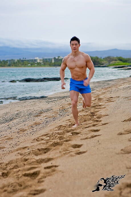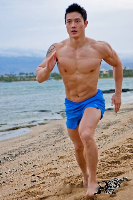 Peter Fever: Oriental bull Peter Le shows a husky body after beach walking