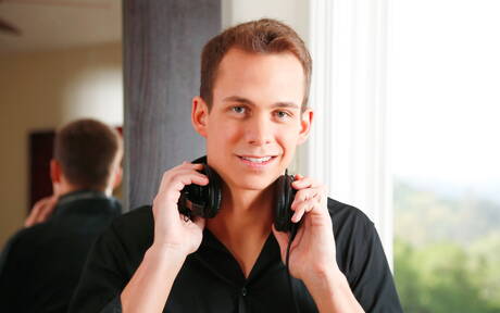 Next Door Studios: Pretty american boys beefy Derrick Dime and pretty boy Garrett Cooper have anal sex