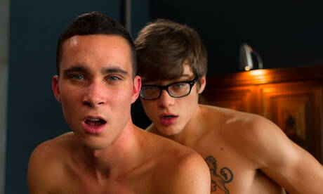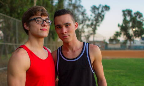 Helix Studios: Pretty american guys tough guy Blake Mitchell and young dude Chandler Mason make a love outdoor