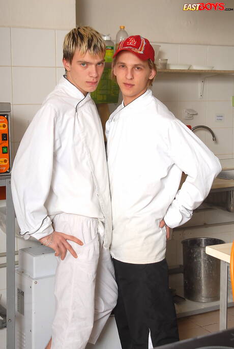 East Boys: Pretty boy Abner sucking and screwing the boy in the kitchen