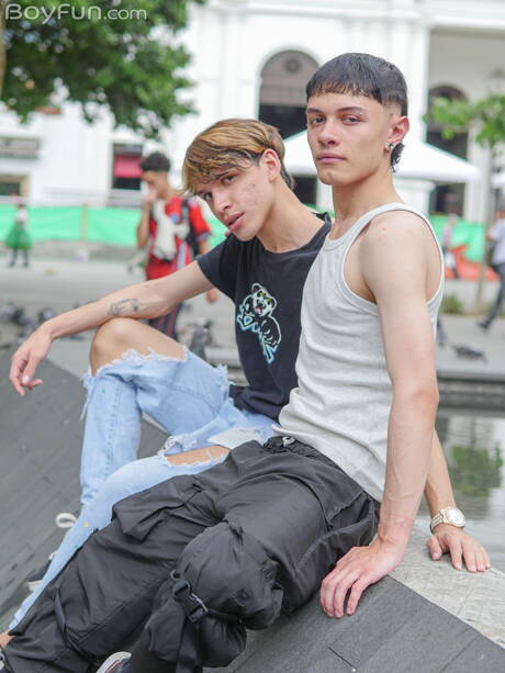 Boyfun: Pretty boy Dylan Malik and hot twink Muriel Karmesi in hot ass bang outside