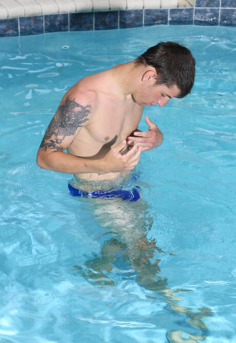 Pride Studios: Pretty boy Scott Cage jack off his cock in the pool