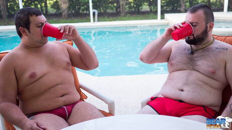 Bear Films: Sensual boy Caleb Delano and beautiful dude Pup Trash in dick sucking scene outside