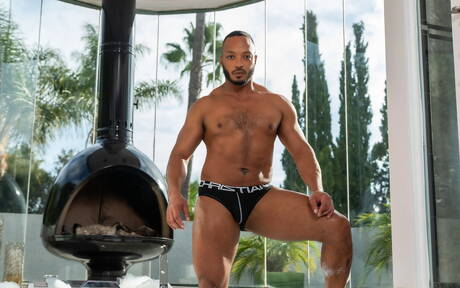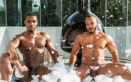 Noir Male: Sexy americans, husky guy Deangelo Jackson and hunky guy Dillon Diaz in hot ass fuck action in bathroom