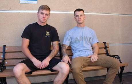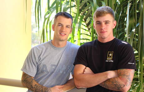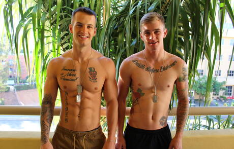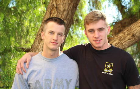 Active Duty: Sexy americans, husky guy Quentin Gainz and pretty boy Ryan Jordan drilling an ass outside