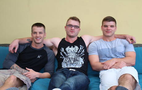 Active Duty: Sexy boys Ivan James, Quentin Gainz and Scott Ambrose have a threesome pleasure outdoor